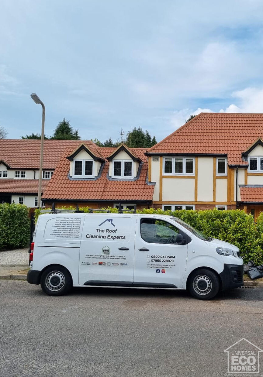 Extremely effective removal of moss, dirt and debris from roof tiles, finished with a protective biocide spray.