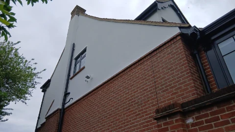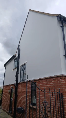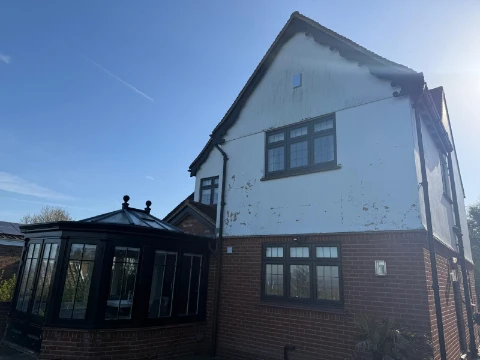 The properties had extensive surface wear, including widespread cracking in the render and weather-related staining. To ensure a durable and high-quality finish, the project began with a full exterior clean, followed by a biocide treatment to eliminate organic growth such as algae and mould.