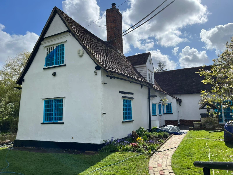 Summary: In just four days, Universal Eco Homes executed a full external restoration of Louie Spence’s cottage, moving from deep cleaning and biocide repairs to the application of a high-performance ProPERLA Façade Coating. The result is a beautiful, breathable, and weather-protected home that combines celebrity-standard aesthetics with long-lasting durability.